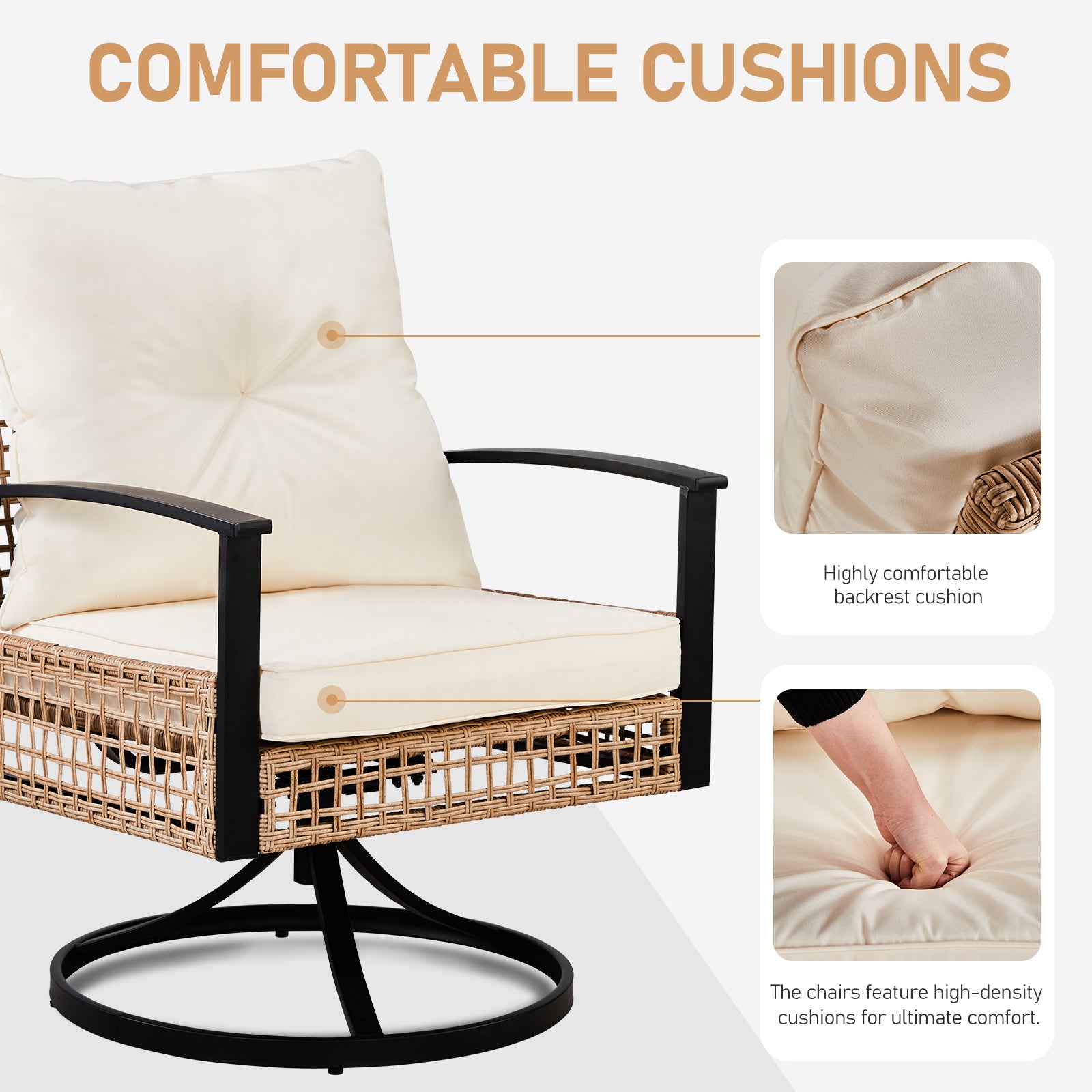 2pcs Swivel Chair And 1pc Side Table, Sparsely Braided Light Yellow Rattan, Off-white Mat, Braided Rattan Three-piece Set