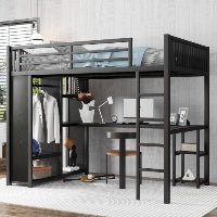 Product Name:Full XL Size Loft Bed Frame with Built-in Wardrobe, Metal Loft Bed with Desk and Storage Shelves, Black