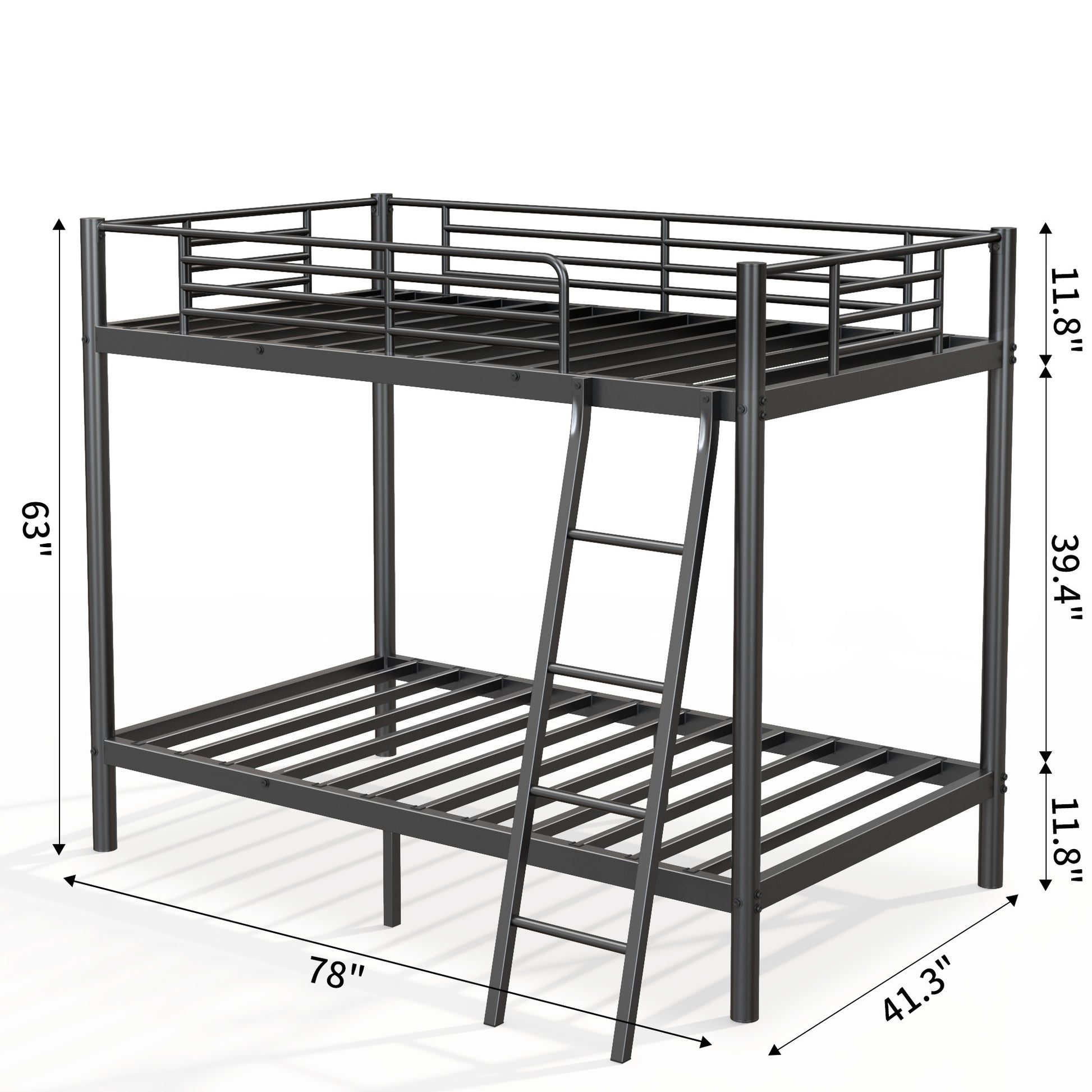 Loft Bunk Bed Twin Over Twin Size With Ladder And Guardrail,Heavy Duty Metal Slats Support No Box Spring Needed Small Space Saving Furniture For Bedroom Dorm,Black