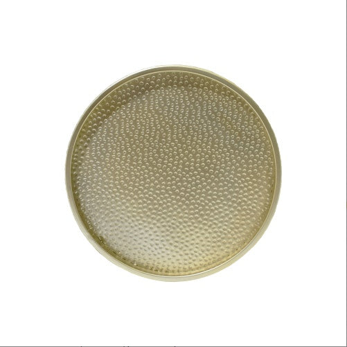 - HAMMERED METAL: This table features a hammered surface to create a gorgeous textured look. This finish allows this piece aesthetic versatility, blending seamlessly with a range of decor styles.